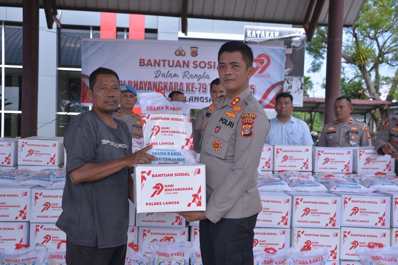 TRANSPARANSI, KOTA LANGSA — Menyambut Hari Bhayangkara ke-79 yang jatuh pada 1 Juli 2025, Kepolisian Resor (Polres) Langsa menggelar kegiatan bantuan sosial dengan membagikan sebanyak 200 paket sembako kepada masyarakat. Kegiatan berlangsung di Mapolres Langsa, Jalan Veteran No. 60, Gampong Teungoh, Kecamatan Langsa Kota, Rabu, 26 Juni 2024 pagi.