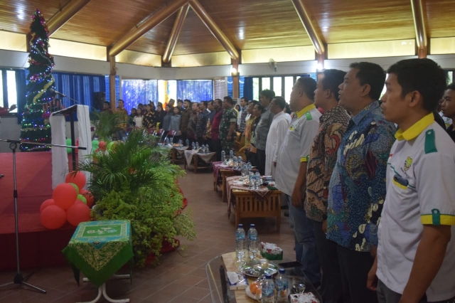 PRINGSEWU, MEDIA TRANSPARANCY – Lagu nasional Rayuan Pulau Kelapa dilantunkan dalam pembukaan acara Peryaaan Natal Bersama Oikumene 2019 Kabupaten Pringsewu, Sabtu, 28 Desember 2019 di GSG Rumah Retret Laverna Kelurahan Fajaresuk, Kecamatan Pringsewu, Kabupaten Pringsewu.