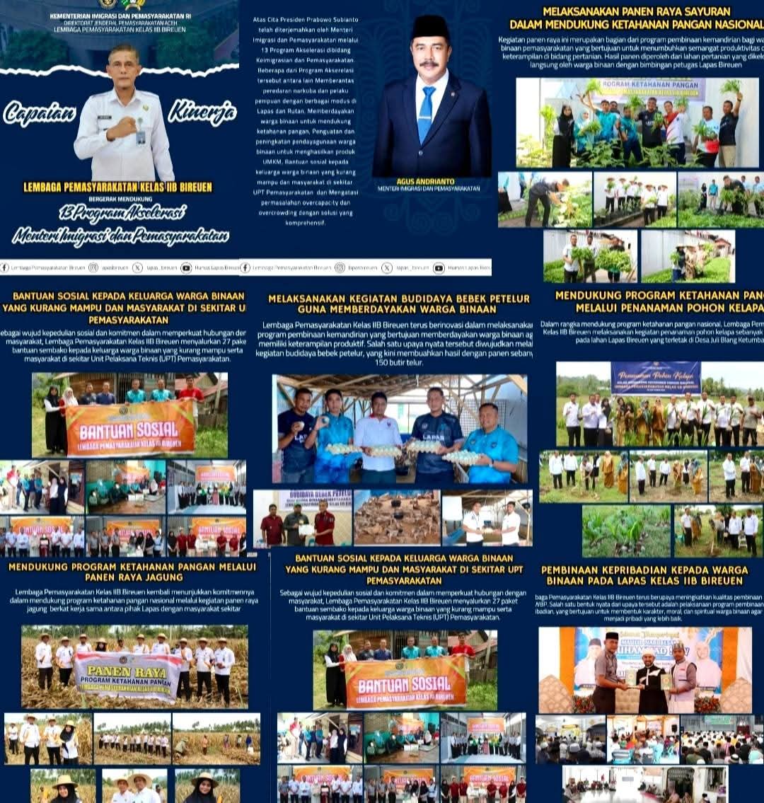 BIREUEN TRANSPARANSI – Lembaga Pemasyarakatan Kelas IIB Bireuen Bergerak Mendukung 13 Program Akselerasi Menteri Imigrasi dan Pemasyarakatan.