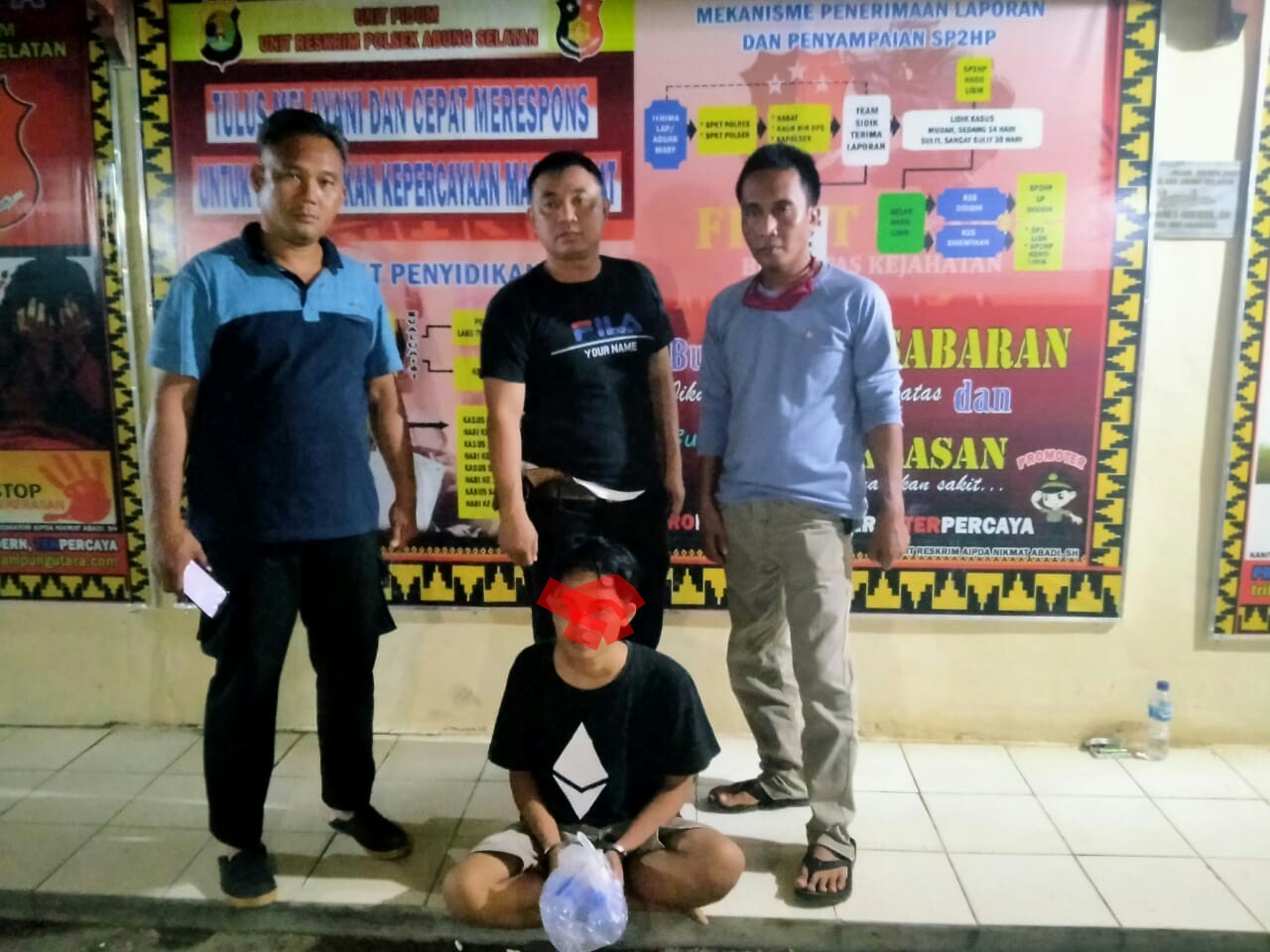 Ditambahkannya, kronologis penangkapan dilakukan jajarannya, setelah mendapatkan informasi yang cukup tentang identitas dan keberadaan pelaku curat tersebut, Unit Reskrim Polsek Abung Selatan yang langsung dipimpin Kapolsek Abung Selatan lansung bergerak untuk melakukan penangkapan pelaku dirumahnya. Kemudian personil kepolisian melakukan penggeledahan dan ditemukan barang bukti berupa sabu dan diakui oleh tersangka barang tersebut miliknya.