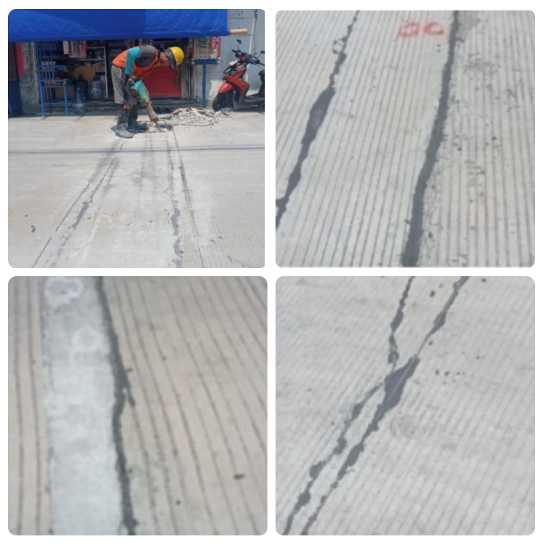Kondisi jalan yang baru seumur Tempe tersebut sudah mengalami kerusakan dimana-mana (retak).