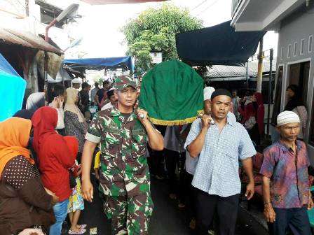 JAKARTA, MEDIATRANSPARANCY.COM – Babinsa Koramil 06/Cempaka Putih, Kodim 0501/Jakarta Pusat BS, Serma Siswanto membantu proses pemakaman warga binaannya almarhum Ustad Halimi Bin Abdul Rahman yang beralamat di RT 02/02 Kelurahan Cempaka Putih Barat, bertempat di Tempat Pemakaman Umum Kawi-Kawi, Cempaka Putih Barat, Jakarta Pusat, Rabu (28/6/2017).