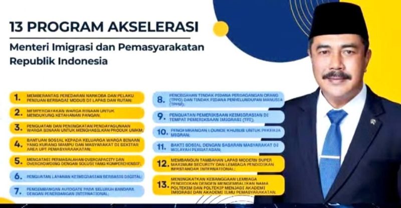 JAKARTA Transparansi – Dalam satu tahun perjalanannya, Kementerian Imigrasi dan Pemasyarakatan (Kemenimipas) terus memperkuat pelaksanaan 13 Program Akselerasi Menteri Imipas sebagai tindak lanjut nyata atas Asta Cita Presiden Prabowo dan Kabinet Merah Putih. Seluruh langkah diarahkan untuk mewujudkan tata kelola yang profesional, berintegritas, serta berdampak langsung bagi masyarakat.