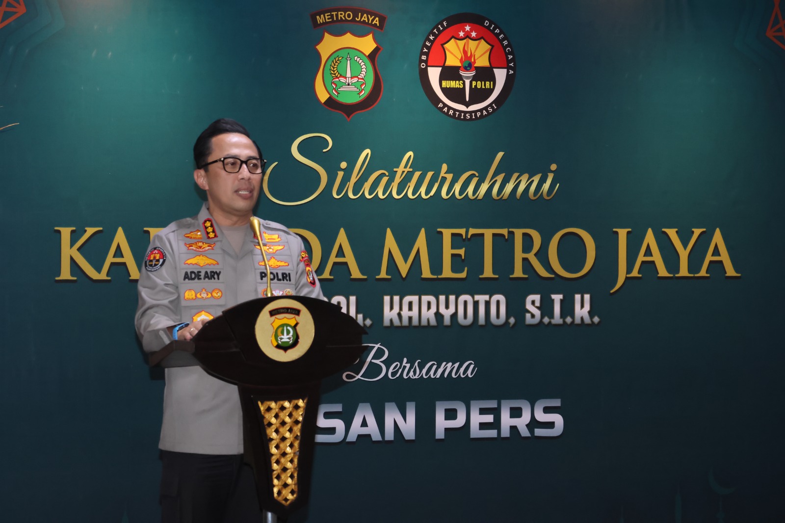 Kabid Humas Polda Metro Jaya, Kombes Pol. Ade Ary Syam Indradi, yang mewakili Kapolda Metro Jaya, Irjen Pol Karyoto menyampaikan permohonan ma’af karena Kapolda berhalangan hadir dalam kegiatan silaturahmi dan buka puasa bersama insan pers yang dilaksanakan pada, Kamis (06/3).dok-istimewa/hms-pmj/@Jag