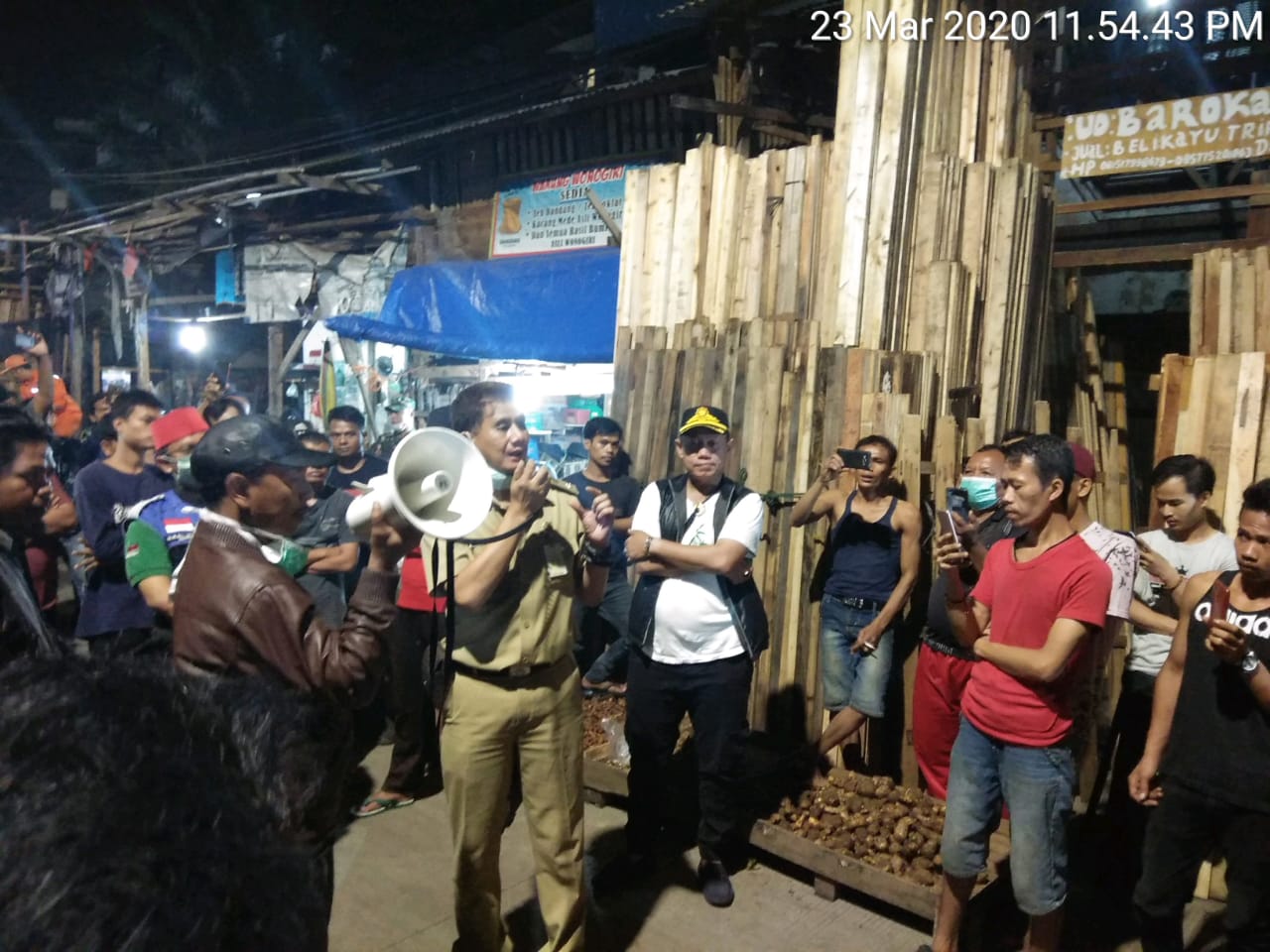Setelah itu, pada 00.00 WIB, Lurah Pejagalan bersama jajaran melanjutkan kegiatan memberikan himbauan kepada masyarakat yang beraktifitas di Pasar Kebon Pala Kampung Gusti.