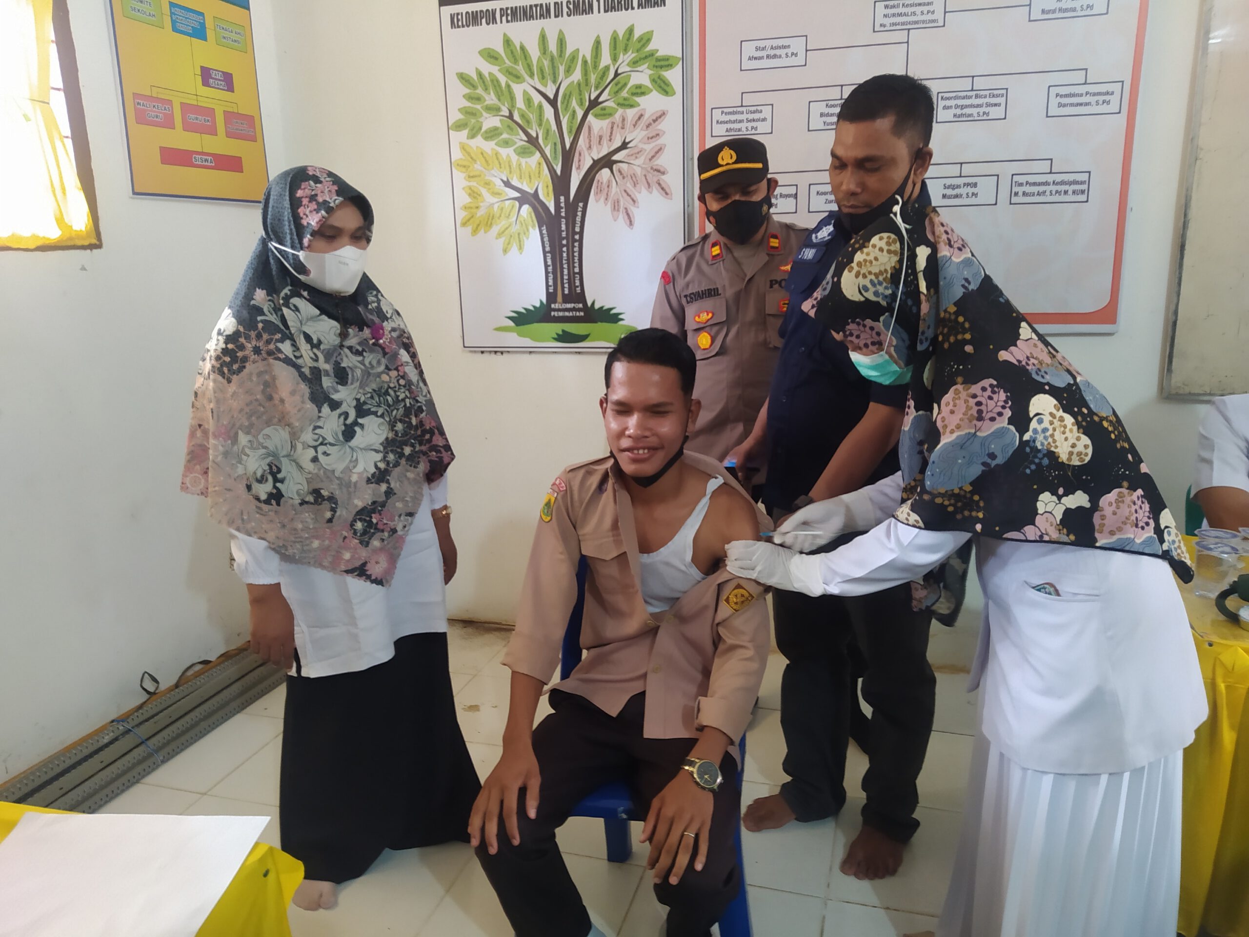 Kegiatan Vaksinasi Covid-19 Siswa SMA Negeri 1 Darul Aman Kedepan katanya, Pihaknya akan terus melakukan sosialisasi Vaksinasi Covid-19 dengan menghadirkan orang tua/wali siswa guna menggenjot capaian Vaksinasi sesuai harapan pemerintah