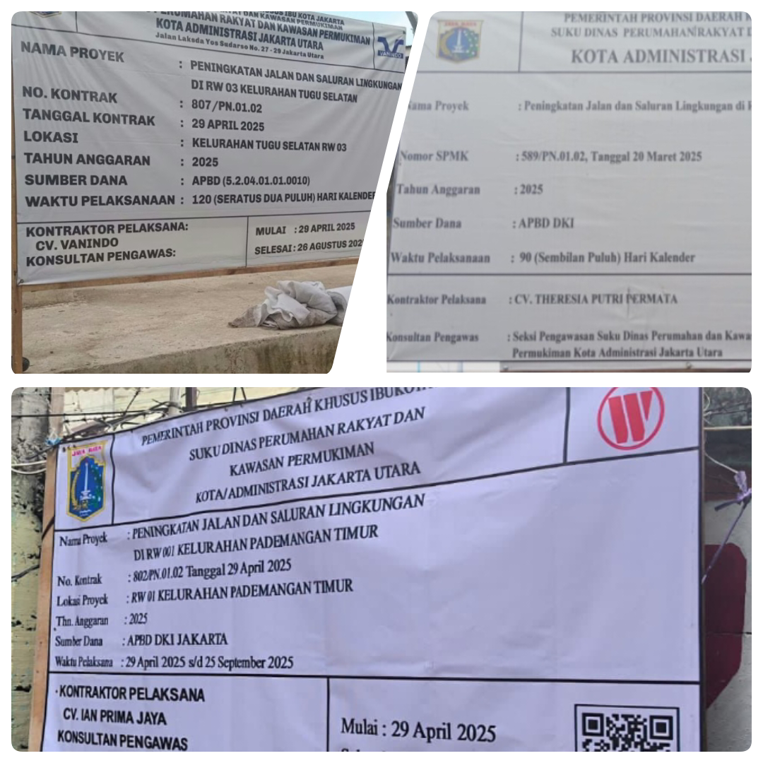 Dikatakannya, salah satu indikasi pelanggaran yang terjadi hampir semua pekerjaan proyek Sudin PRKP Jakut adalah ketiadaan jumlah anggaran dalam papan nama proyek.