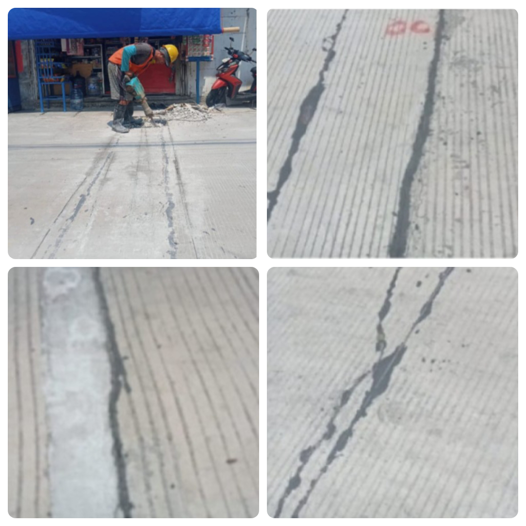Pelaksanaan pekerjaan proyek ini diduga dilaksanakan acakadul, sehingga baru seumur jagung kondisi jalan sudah mengalami kerusakan dimana-mana (retak).