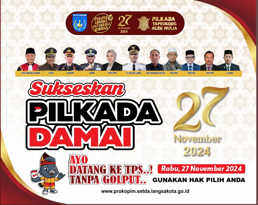 “Kami menghimbau kepada bapak ibu saudara-saudari yang memang punya hak untuk memilih, yang sudah punya hak pilih Mari kita gunakan hak ini dengan baik sebagai warga negara yang bertanggung jawab, sehingga kita bisa berpartisipasi untuk menentukan pilihan walikota dan wakil walikota yang terbaik untuk Kota Langsa serta gubernur dan wakil gubernur yang terbaik untuk Provinsi Aceh, hindari golput, pungkas Pj. Walikota Langsa, Dr. Syaridin SP.d. MP.d.