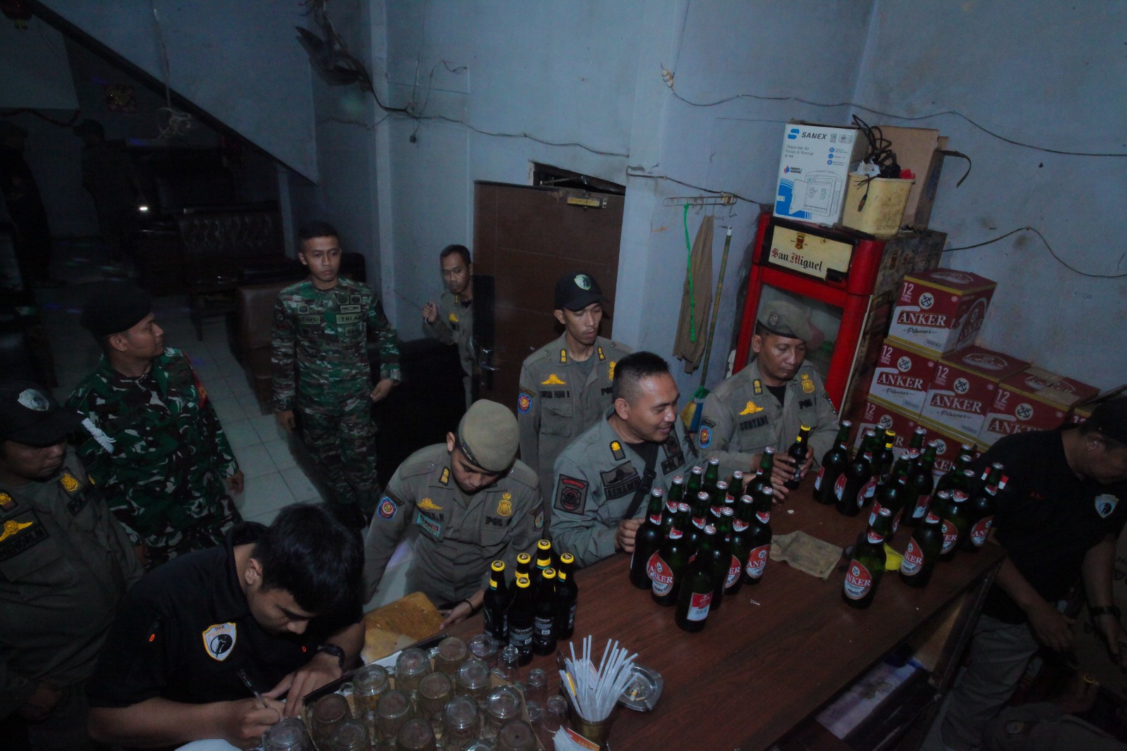 “Selain menyita minuman keras, kami juga menjaring 9 wanita dan 7 pria yang bukan pasangan resmi serta beberapa dus alat kontrasepsi. Semua kami giring ke kantor untuk dimintai keterangan dan di data lebih lanjut sesuai peraturan yang berlaku,” tegas Mukhsin Alfachri.