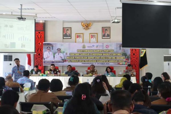 Wakil Bupati Samosir Ariston Tua Sidauruk menegaskan bahwa stunting masih menjadi persoalan mendesak yang harus diselesaikan bersama, mengingat dampaknya tidak hanya mempengaruhi tumbuh kembang anak, tetapi juga masa depan bangsa. “Stunting menjadi ancaman serius bagi generasi penerus. Karena itu kita harus menjadikan penanganan stunting sebagai prioritas utama,” ujar Ariston saat membuka Pertemuan Ramos Pantas Melalui Pengelolaan Dashat di Aula Kantor Bupati Samosir, 21/10.