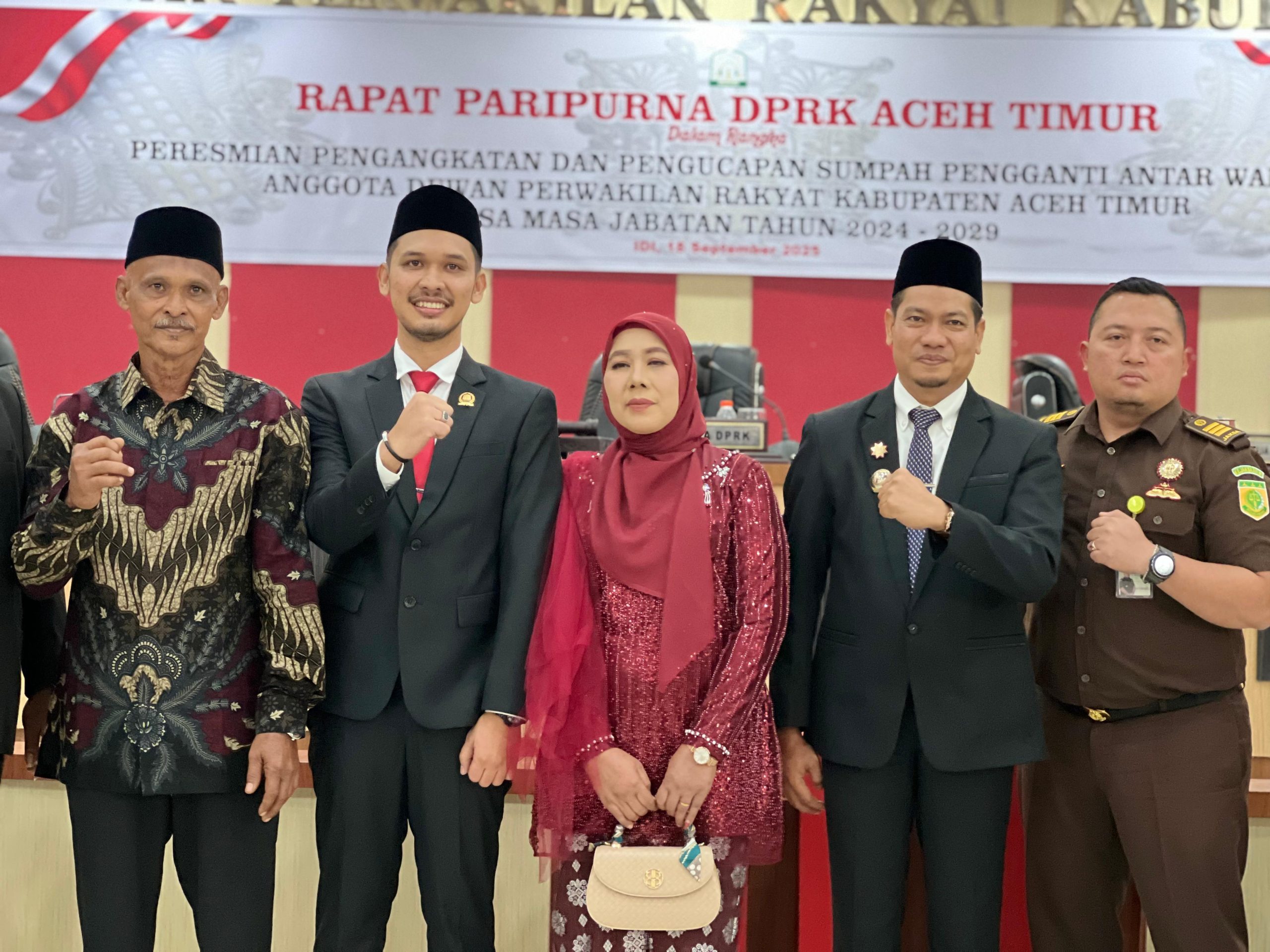 Transparancy Aceh Timur – Wakil Bupati (Wabup) T.Zainal Abidin,S.Pd.I., M.H menghadiri Rapat Paripurna Dewan Perwakilan Rakyat Kabupaten (DPRK) Aceh Timur dalam rangka Pelantikan Pengganti Antar Waktu (PAW) anggota DPRK Aceh Timur, yang berlangsung di ruang sidang utama Gedung DPRK, Kamis (18/9/2025).