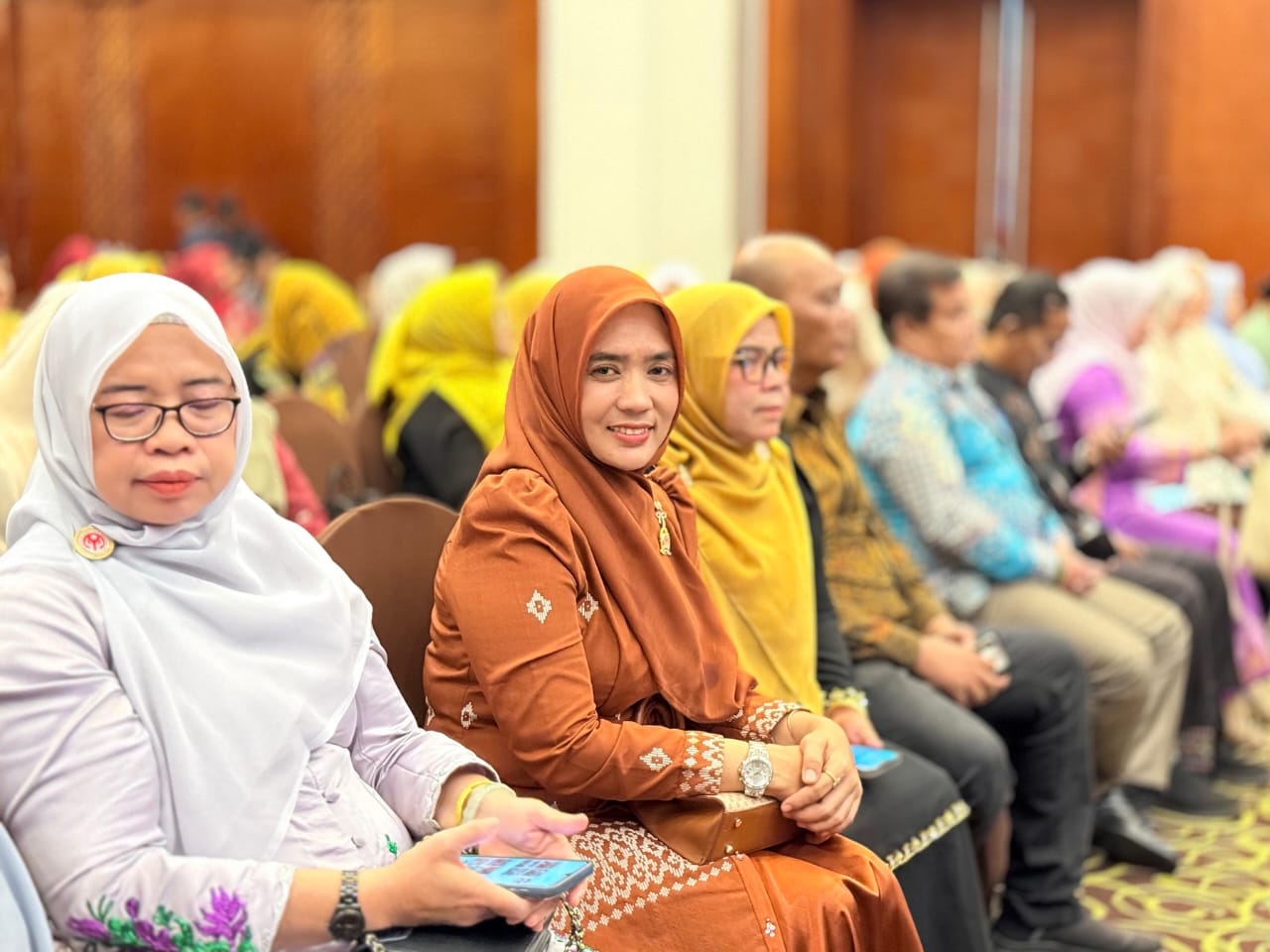 Transparancy Aceh Timur – Banda Aceh Wakil Ketua Dewan Dekranasda Aceh Timur, Ny. Bd. Erni Handayani T. Zainal Abidin, S.Keb, menghadiri sekaligus mendampingi Ketua Dekranasda Aceh Timur, Ny. Lismawani Iskandar Usman Al-Farlaky, S.Pd., M.Ag, dalam kegiatan Rapat Koordinasi Ketua Dekranasda Se-Aceh, yang digelar di Ballroom Hotel Hermes Palace, Banda Aceh. Sabtu 08 Nov 2025.